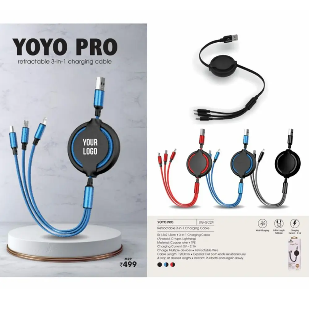 YoYo Pro – 3-in-1 Charging Retracting Cable